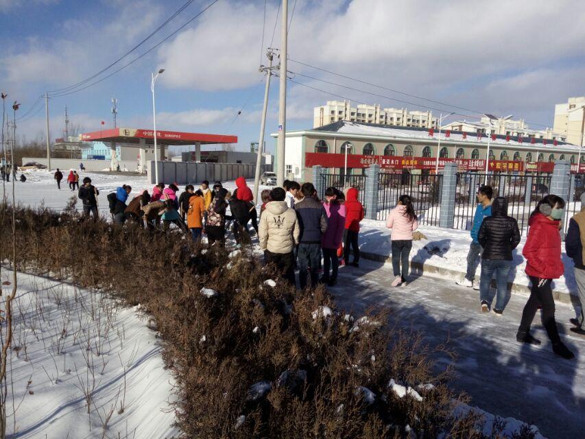 中午,我们全体带上工具,向目的地出发。到了目的地,除了皑皑雪堆外,也就只有师生们组成的铲雪队了。大家奋战在铲雪的"第一线"上,大家都在很卖力的铲雪,一个个的开始向路的两边铲去……在老师威严地指挥下,所有的人一铲一铲地亲自挥揪上阵,以身作则带领同学们铲雪。劳动中带着欢乐。路面上已经被开辟出来一条道路。虽然汗流浃背,可还是十分得意!!