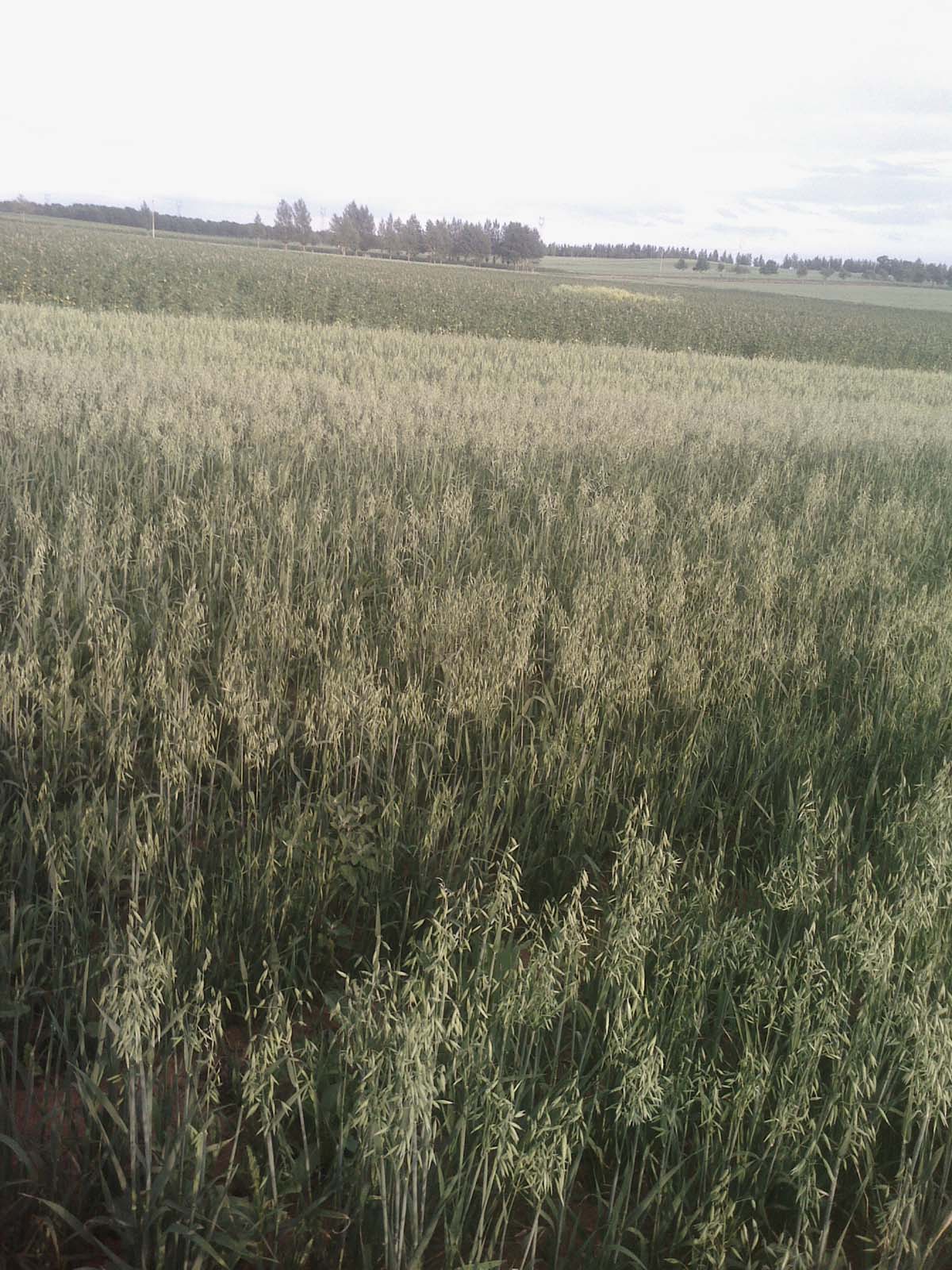 莜麦是坝上特有的一种庄稼,它就是莜面的前身,是我们的主要食物之一。莜麦刚长出时像韭菜一样,后来越长越高,到了夏天它就开始结莜麦粒了,这时的莜麦是最好看。