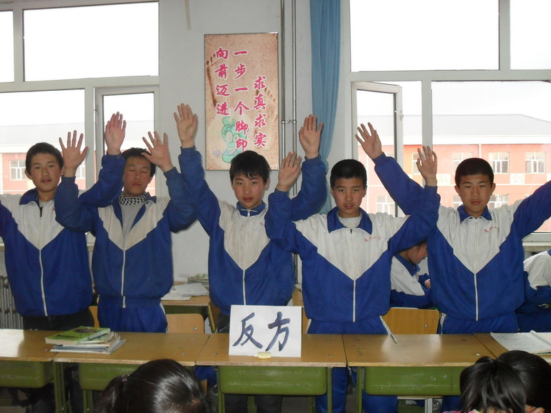 "我反对"一声响亮的声音传入耳中,这是我们进行的一场"开卷是否有益"的辩论会发出的声音。这是一次唇枪舌战的辩论会。我是反方,主辩手刘浩洋选出了七名实力干将:我,忻胜月、李晨然等。正方主辩手张宇也选出他们的实力干将。