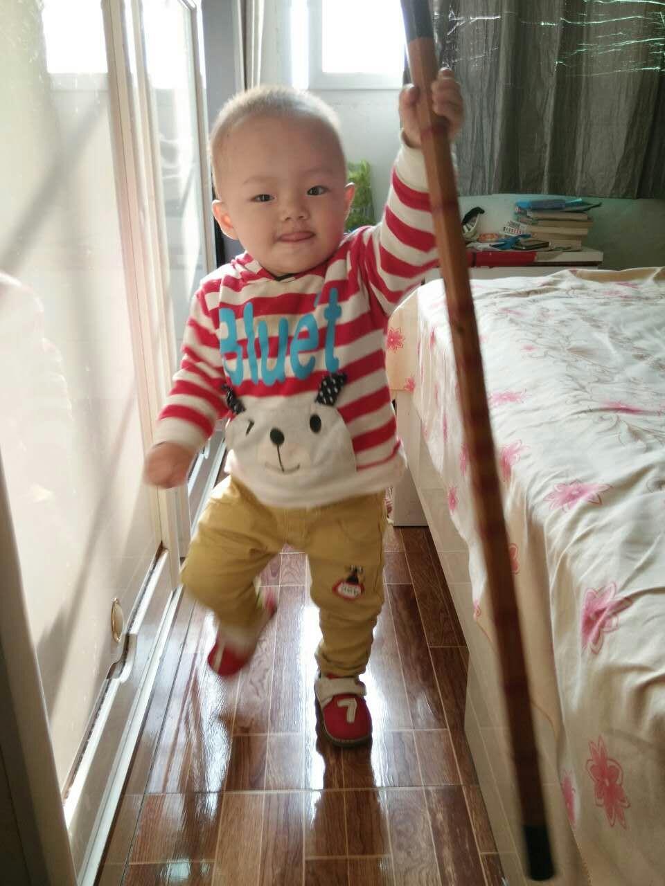 弟弟也特别淘气。一回到家里,基本就是他的天下了,玩具他要一样样的给丢到地上,还用脚去踩。一会儿跑到客厅,一会儿又跑到卧室,如果你不关注他了,他还会高兴地大叫,让你以为发生什么事。所以弟弟也是学校老师们的开心果,大家一有空,都要逗他一会儿,而弟弟不管谁逗他,他都会高兴的回应,笑或做相应的动作。