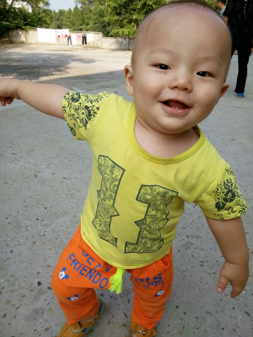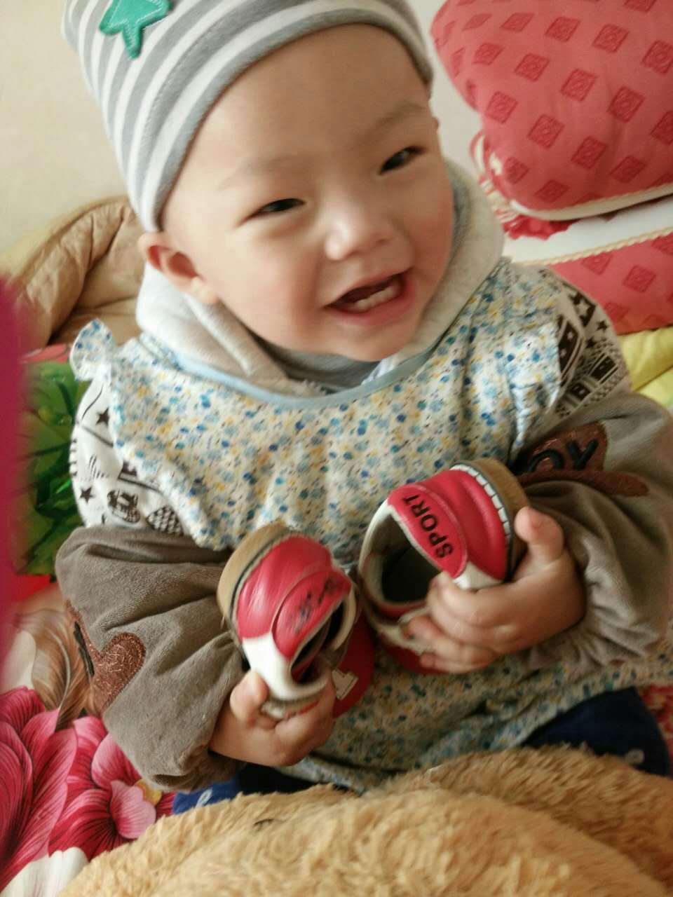 我的弟弟现在满一岁二个月了,在同龄孩子中他算长得快的,结实的身板,胖胖的小手,不多的头发,有神的眼睛,似乎预示着他是个不同寻常的孩子。