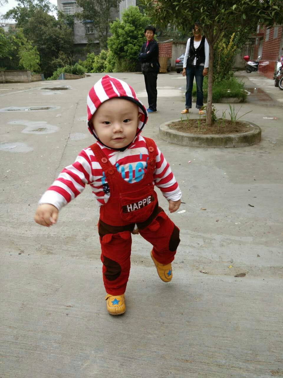 弟弟特别爱研究东西。每次坐他的小推车的时候,他不看前面的路或什么的,总是扭头或朝下看车轮,好像在思考为什么车轮会转呢?一看就是大半天,直到你不推他了。 弟弟也特别淘气。一回到家里,基本就是他的天下了,玩具他要一样样的给丢到地上,还用脚去踩。一会儿跑到客厅,一会儿又跑到卧室,如果你不关注他了,他还会高兴地大叫,让你以为发生什么事。所以弟弟也是学校老师们的开心果,大家一有空,都要逗他一会儿,而弟弟不管谁逗他,他都会高兴的回应,笑或做相应的动作。