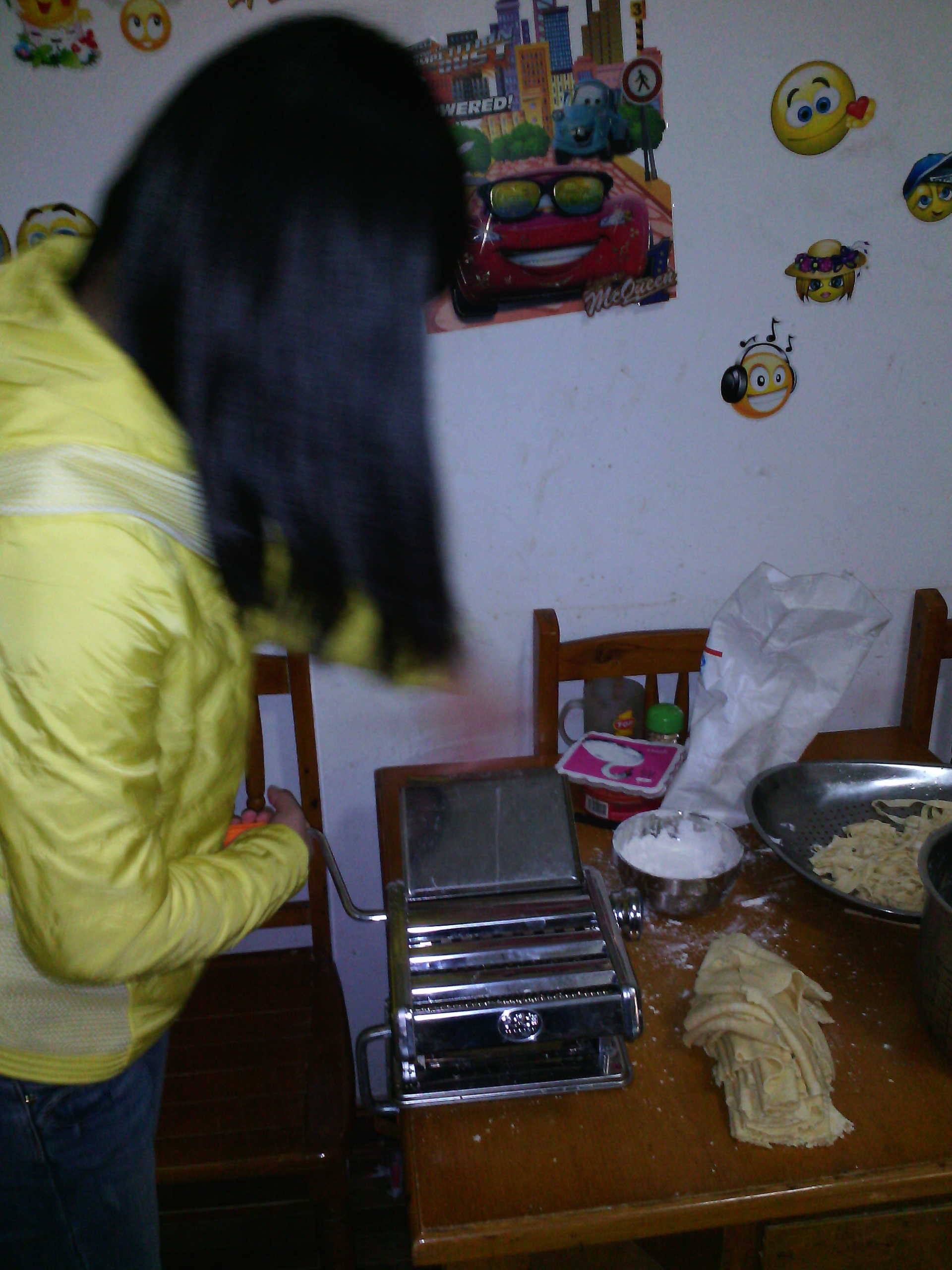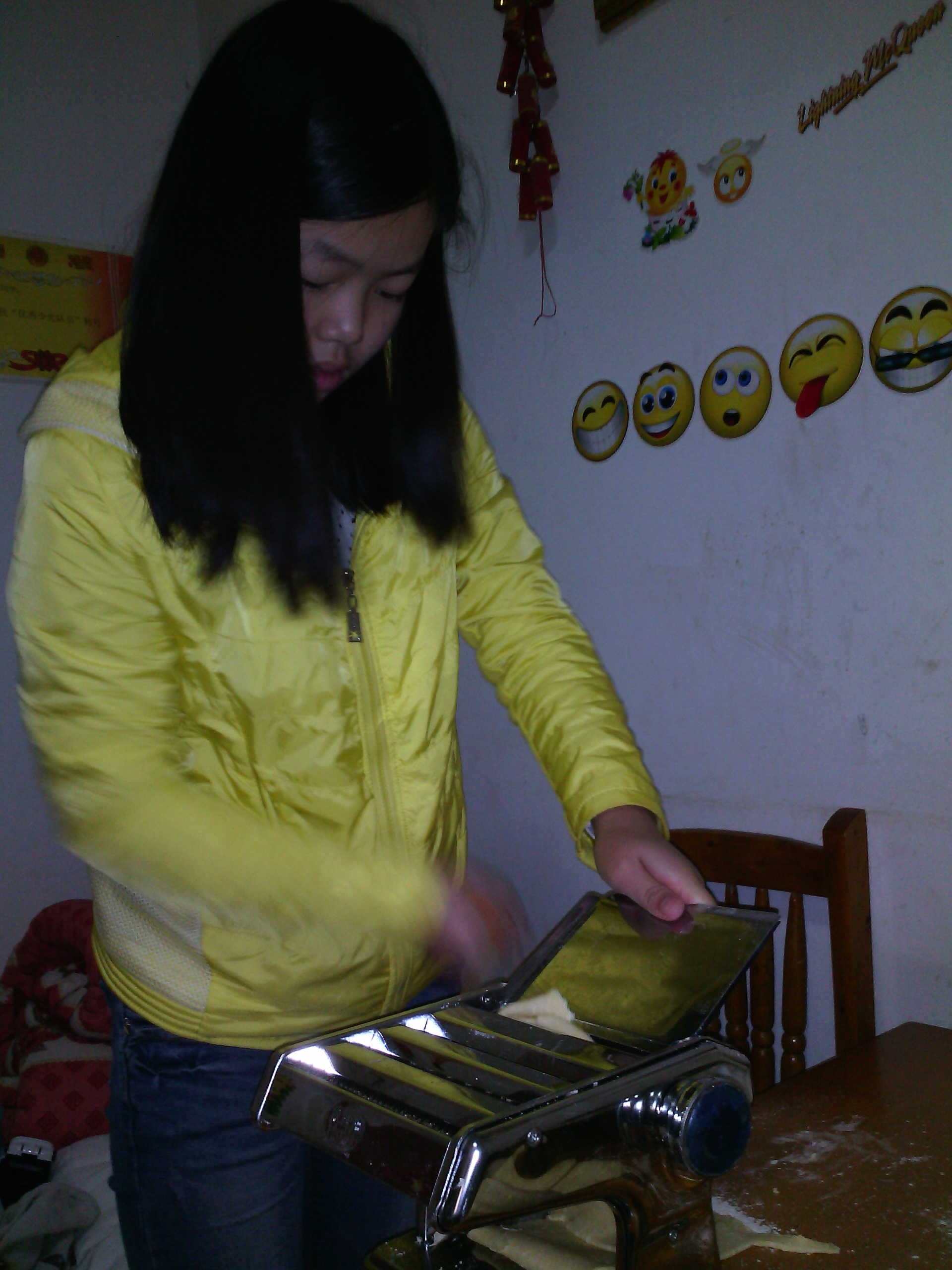 前不久,爸爸买回了一台手动面条机,这周末我们爷儿俩兴致勃勃地开始了试机器的工作,准备做今天晚上的大餐。