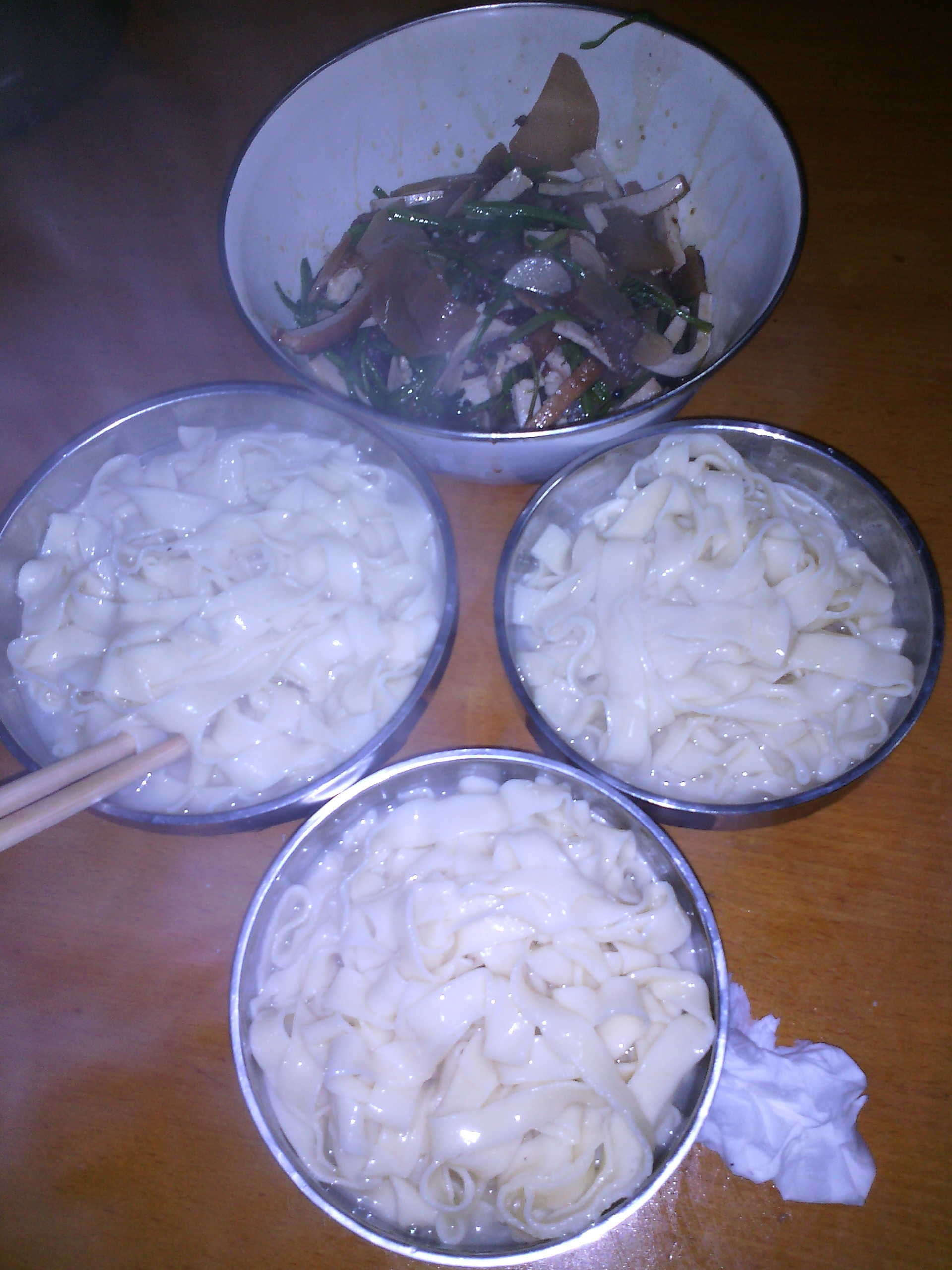 为了吃上可口的面条,爸爸还特意炒了香喷喷的臊子,配齐了各种调料,白白的面条、红红的臊子、绿绿的蔬菜、亮亮的油,让人馋得直流口水。