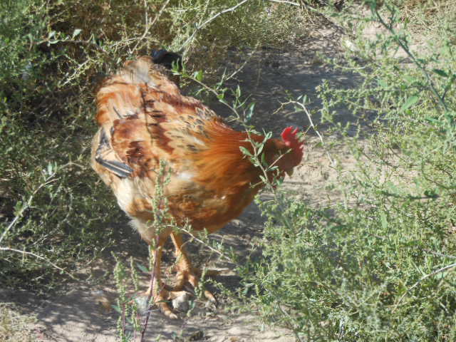 看,这只英雄威武的大公鸡。带着胜利者的姿态,在地里兜圈子,像一个打了胜仗的将军一样威风。它的羽毛非常漂亮,就像穿了件艳丽的礼服,头上还带着一顶鲜红的礼帽,好像要去参加一场盛大的晚会。 枸杞鸡不但漂亮,而且它们的肉有很高的营养价值,肉味鲜美,在我们这里很爱欢迎!