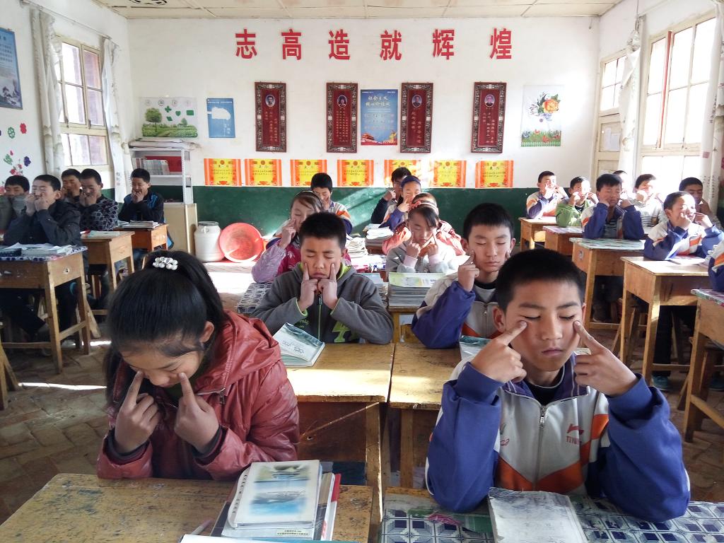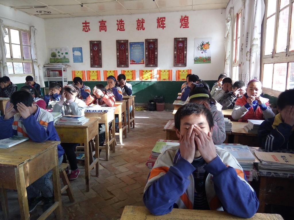 为了保护我们的视力,老师给我们教了一套眼保健操。老师都的时候动规范、标准,可是同学做着,做着就变样了。这是我们的眼保健操时间。第一节按压睛明穴,标准做法是:用双手食指指腹分别按在两侧穴位上按揉,其余手指自然放松、握起,呈空心拳状。同学们有的托着下巴,有的捂着脸。