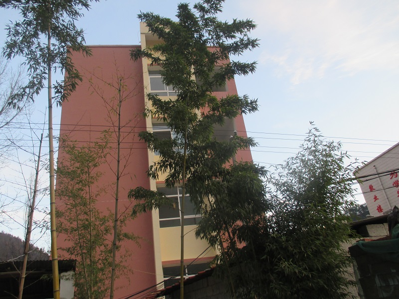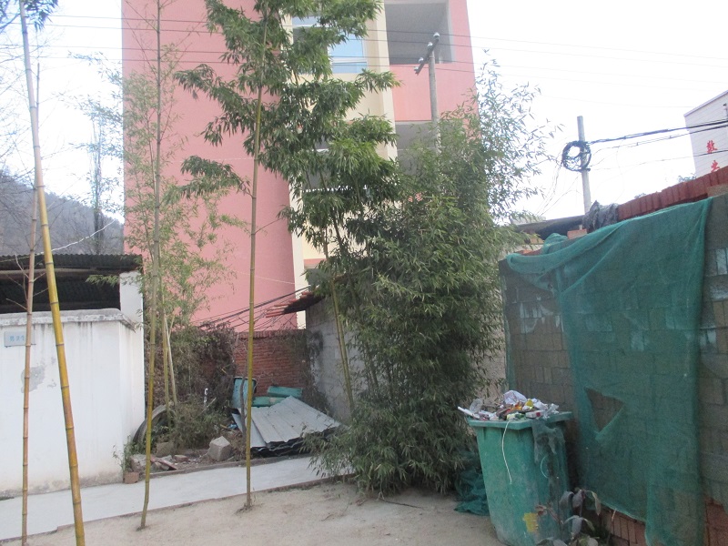 故居后面的几颗竹子,阳光洒在林间小路上,竹林中竹影婆裟,一株株翠绿的竹子高耸挺拔,顶天立地,无论是严寒还是酷暑,他都四季常青,象征山区人民正直质朴的品质。