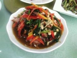 陇州凉盘代代相传,每逢佳节就成为餐桌上必不可少的一道菜。陇州凉盘的配料主要以瘦肉、红萝卜、菠菜、黑木耳等为主,副料有葱花、十里香、生姜、陈醋、老抽、蒜、辣椒丝等,在调拌时最关键,先用菜油浇后,入盐、味精后即可。上盘后五彩缤纷,鲜艳夺目,黑白分明,绿中透红,一股股香喷喷味儿扑面而来。