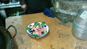 我按照爷爷说的先往锅里倒了半锅水,然后又找了一个碗接着往碗里倒了一碗水再放入黑木耳泡上半个小时。接着我用菜刀把熟猪头肉切成片,接着又把红萝卜切成大小相等的菱形,接着又将菠菜切成一寸长,动作可谓是干净利落。再下来我又在盆子里拿了一把豆芽,然后帮它们把“衣服”脱了又将杂质去尽。看水了煎以后将切好的胡萝卜、猪头肉、菠菜倒入锅中蒸煮。煮熟后倒一盆凉水将菜倒入水中降温。之后再捞出倒入盘中再撒上泡好的黑木耳,一盘陇州凉盘便展现在了我的眼前。