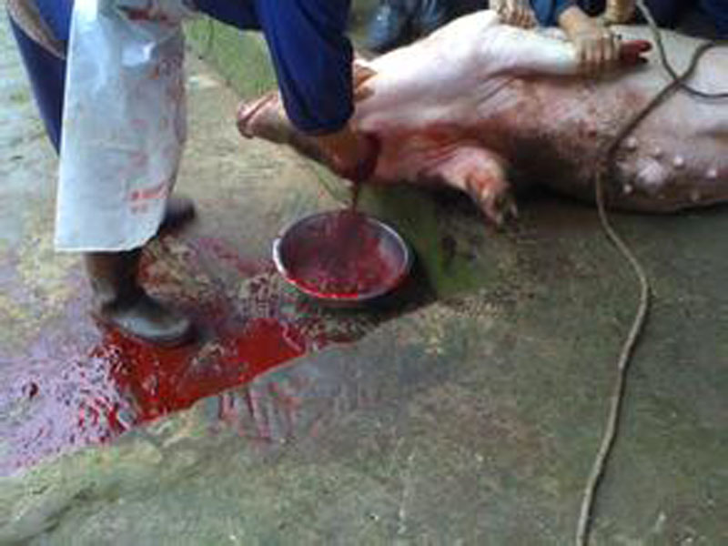 小猪被赶出来后爷爷他们把小猪摁到了地下,这时的小猪叫得越来越厉害,可不管它怎么叫杀猪的叔叔还是拿起一把锋利的杀猪刀像小猪的脖子刺去,顿时就有好多的血从小猪的脖子里冒出来年,现在想想杀猪的场面太血腥了,以后再也不看杀年猪了。