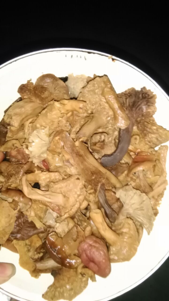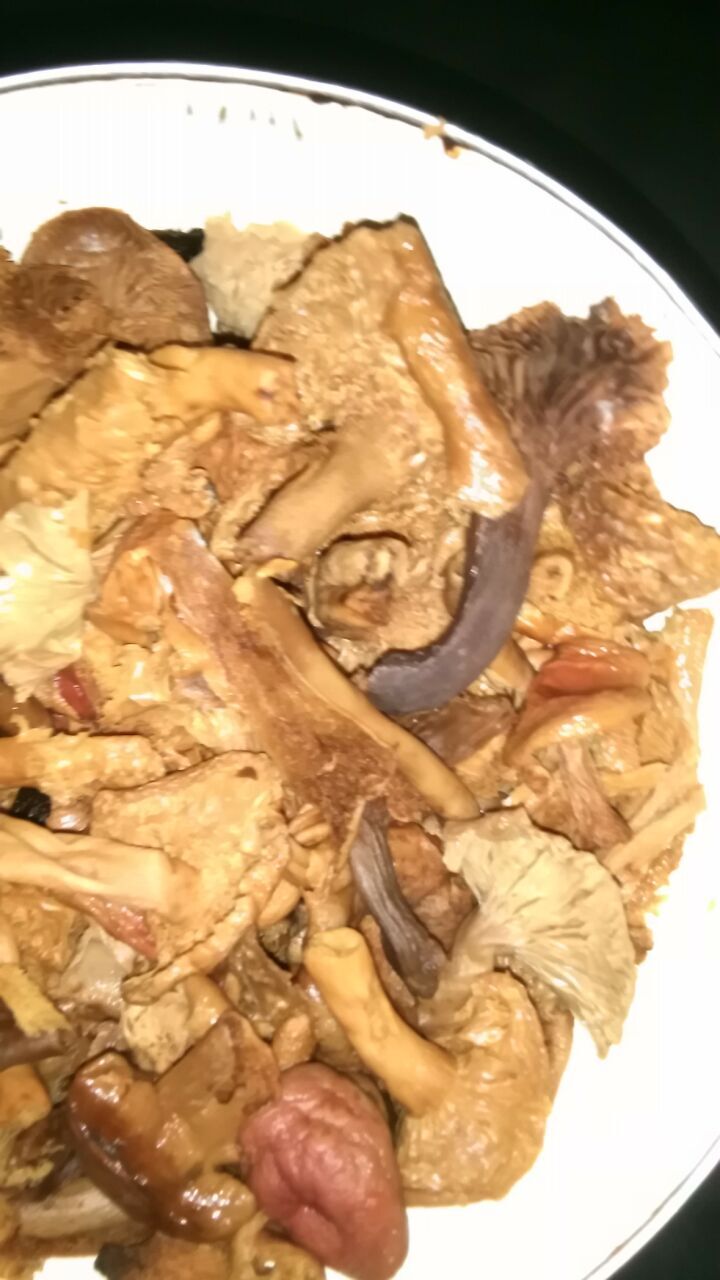 那我今天说的野菌子,其实我也不知道具体叫什么,反正只知道叫野菌子,它是黄色的,现在的山区里基本是没有了。它可以吃,煲汤吃,顿骨头,还可以炒着吃。它的表皮是深黄色的,干茎也是深黄色的。貌似多吃也可以治病。