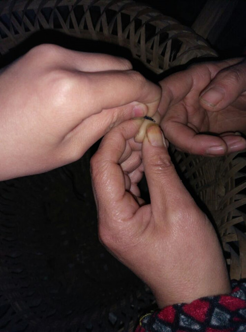 我赶紧跑进屋里拿出一根细针,又找来白酒对针进行简单的消毒。然后用左手捏住妈妈粗糙的手指头,右手拿着针,小心翼翼地开始挑刺,没想到摆弄了好一阵子,还没挑破手指皮。我这双灵巧的小手居然变得笨拙起来了。我深深地吸了一口气,捏紧针,看准扎刺儿的部位,沿着刺儿的周围用力挑。"嗒,嗒,嗒"这细小的挑破手指皮的声音,让我害怕,好像一针针扎在我心上一样。但我知道如果不挑出这根刺儿,妈妈的手指就会发炎,化脓。