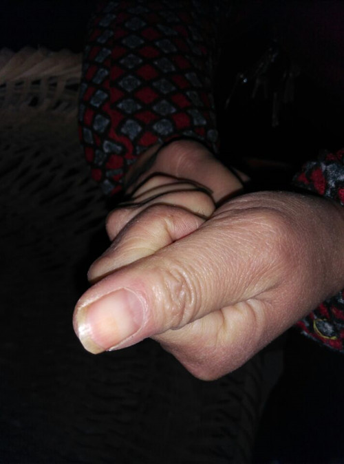 "哎哟"一声叫唤从我身后传来,我猛回头一看,只见妈妈左手紧紧攥住右手的食指,脸上露出痛苦的表情。不用说,妈妈的手指扎了刺儿了。