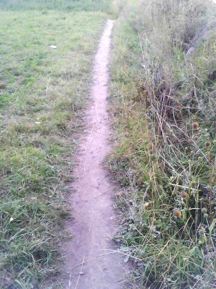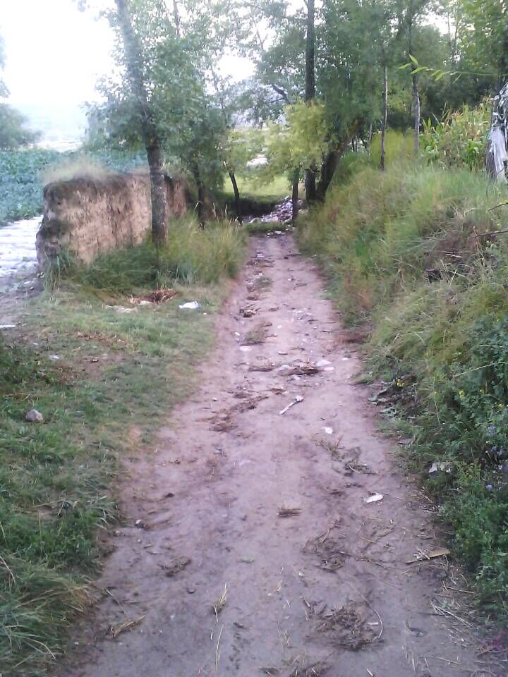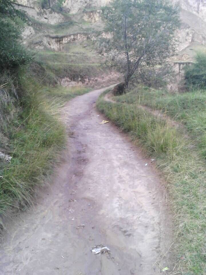 羊肠小道,曲折延绵,路旁绿草竞芳,花朵争艳,可一阵秋风掠过,路旁失去了以往的生机,半尺高的枯草参差不齐,大地干裂开一尺宽的口子,路面凹凸不平,乱蛙四处蹦跳。有时还会踩中“地雷”——动物的粪便。