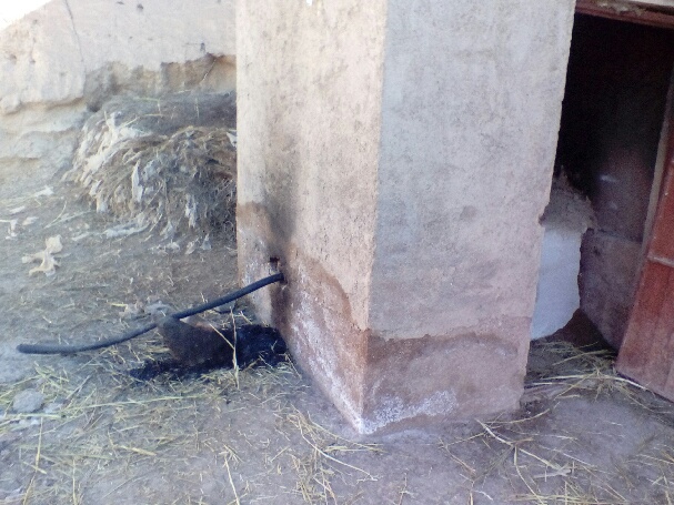 如果夏天去接水,只要拧开水龙头,水便自动从水龙头里哗哗地流出来,十分简单,但冬天并不这么简单。在冬天,当温度到零摄氏度水便会结冰,我们接水的管子和水龙头也会结冰,拧开水龙头后冰挡住了水的去路,水肯定不会流出来,这时就必须用火烧了,在接近水处的地方有一个麦场,那里堆着草,可以在那些草堆里找上一把草去烧水管,烧上一会儿,如果还不行,就只有用暴力的方式来解决—摔,把管子使劲往石头上摔,把冰摔碎后倒出来,然后就可以接水了,为了防止管子结冰,晚上最好把管子里的水甩尽。