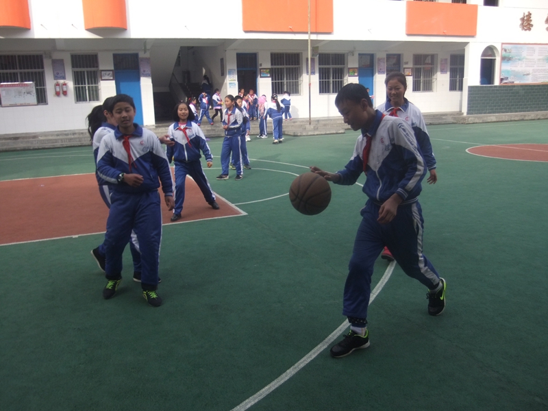 今天班主任带领我们在一起打篮球。这次活动我们全班同学都参加了,全班36名同学被分成9组,9组队员两组同时上。首先,老师为我们讲解了游戏规则。9组队员纷纷上前去尝试,班主任老师在一旁认真地讲解着,分析着。