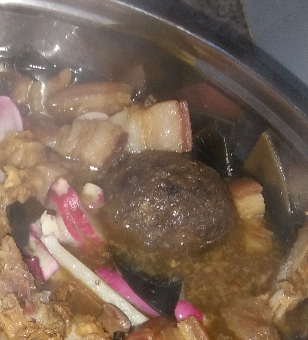 我拿了一个去洗了放在煮肉的锅里,煮的时间差不多有一个多小时吧。血团子要煮久一点,因为里面加的有猪油,不煮熟吃了肚子会不舒服的。