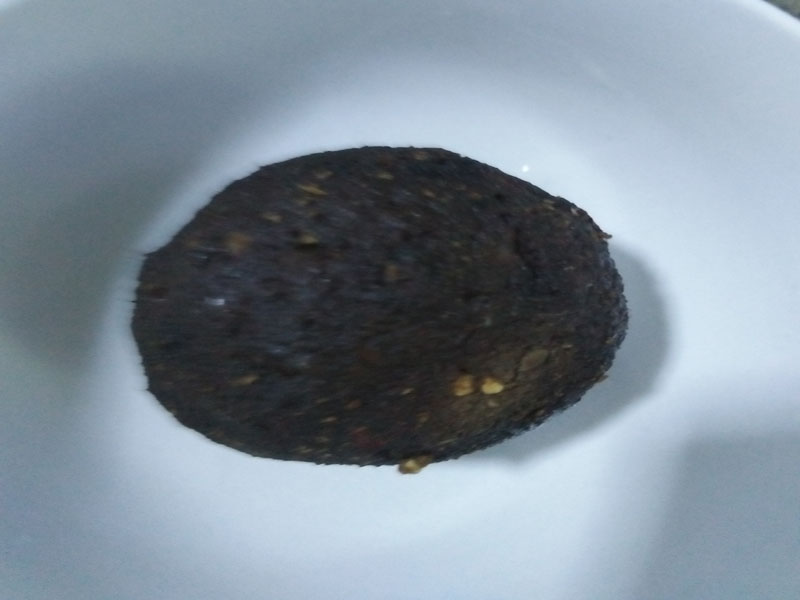 当血团子成黑色,用手捏不会散的时候,血团子就可以食用。