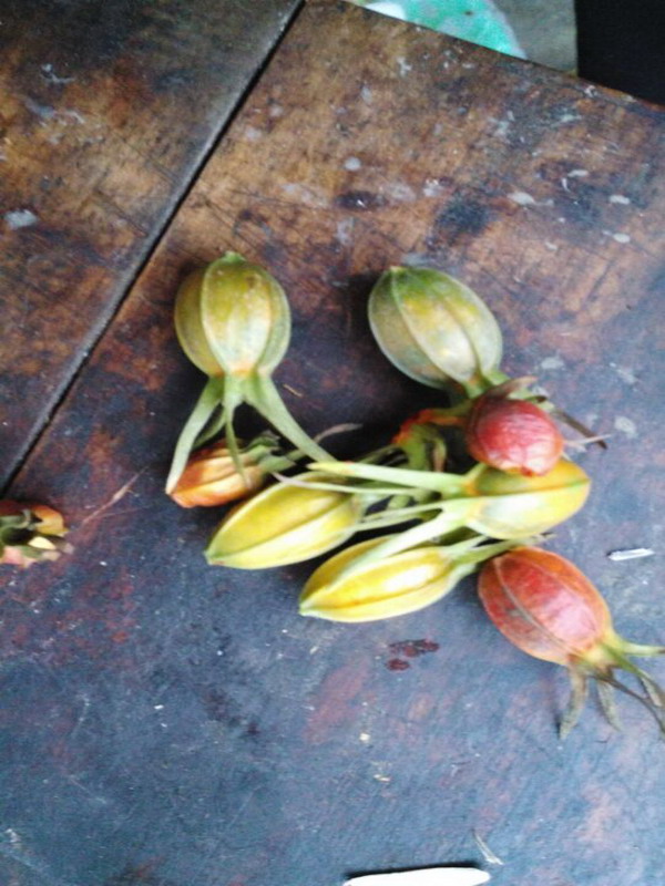 到农历九十月,果实成熟了,这时果实由青色变成金黄的,那金黄的果实映衬着绿叶特别好看。每到这个时候人们就把果实摘下来,晾干,用它来泡水喝,既解渴又清热泻火。