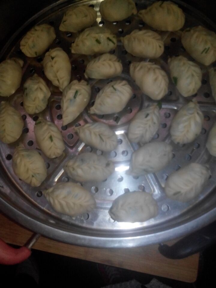 等和好的面腥好之后,干好的一个个荷叶状的面片,将肉馅包裹在里面,别看我第一次包饺子,包的饺子还像模像样的,还学会了包小包子呢,不过还是要注意将饺子的边缘捏紧,以防下锅时渗水,出锅时烫嘴。
