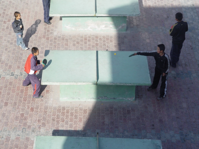 乒乓球是一些同学酷爱的体育项目,它便于携带,还很好玩儿。课间操后,同学们便拿上自己的"宝贝"——乒乓球,到乒乓球案上打了起来。他们左一下,又一下,乒乓球蹦过来跳过去,好像在高兴地说:"真好玩,真好玩!"这就是我们七(二)班,这个班里的同学们热爱新中国,爱学习,还各有个的爱好。