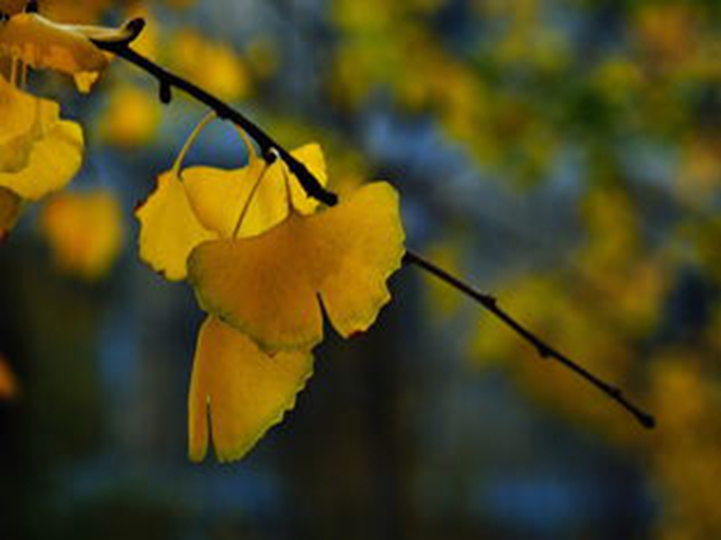 再看看近处的银杏树,秋风一吹,一片片银杏叶从树上落下来,像一只只金色的蝴蝶在跳舞。我从地上捡起一片银杏叶,银杏叶正过来看像一把小小的扇子,倒过来开,像一个小小的裙子。摸起来很薄。它的纹路很特别,正反面都是一样的,纹路都是从叶柄往另一头延伸。到了秋天,银杏树的叶子就会从绿色变成黄色。干枯的叶子飘到地上,又像是一只只枯叶蝶,有趣极了!