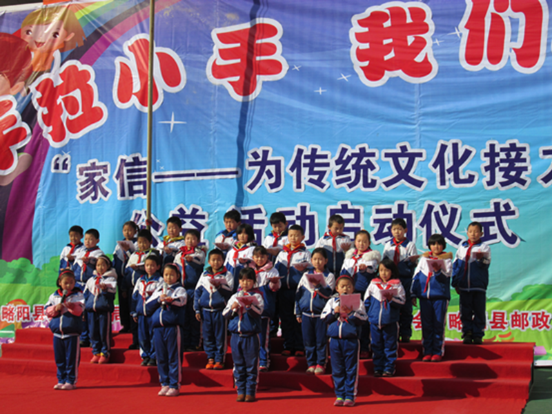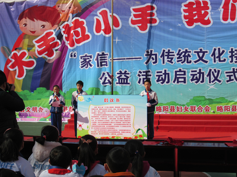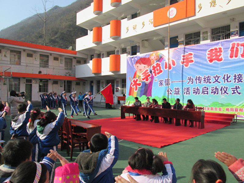 12月29日上10:30,略阳县"家信—为传统文化接力"公益活动启动仪式在我校隆重举行。同时,我校的"大手拉小手,我们一起走——关爱留守儿童"少先队主题队会也一并举行。虽然天气寒冷,但我们的校园却到处洋溢着热情。