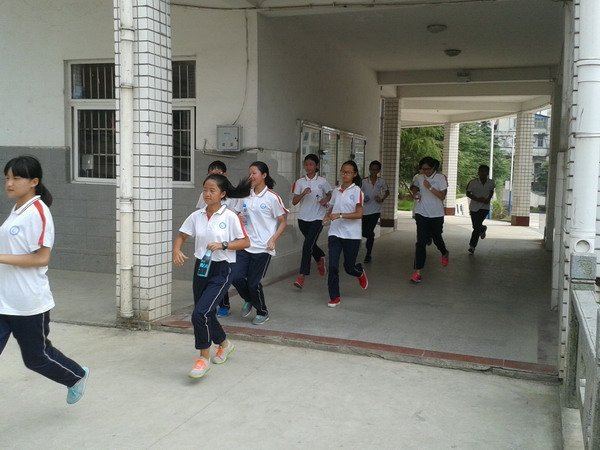 各班同学在相关教师和班主任的引领下,从预先安排好的行径路线,迅速有序地从各班教室撤离到校田径场,用时2分钟56秒。整个疏散工作按照预定的方案顺利完成,圆满达到了预定的目标。