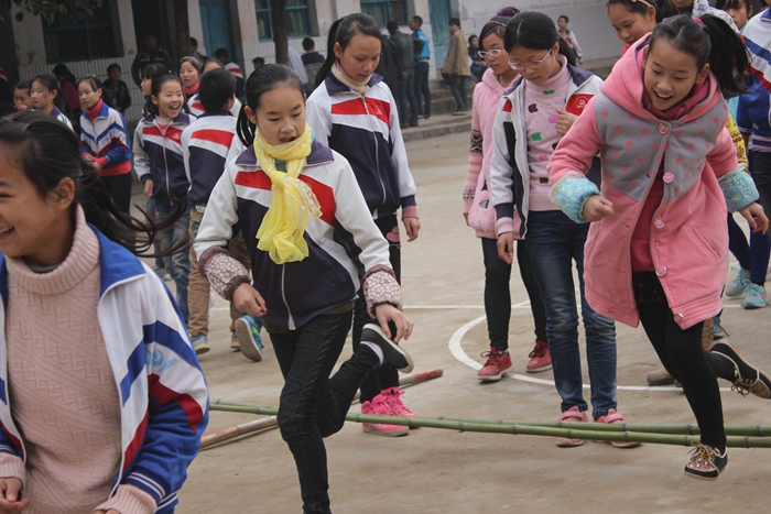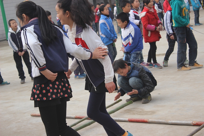 最后也就是我们八年级的特色活动——竹竿舞。四个人随着音乐的节奏拍打竹竿,其他人在竹竿之间跳动。你不要认为打笔杆轻松,没有高强的配合,是打不出相同的节奏,跳也并非那么简单。但对于久经沙场的我们,小错误已经不再犯了。