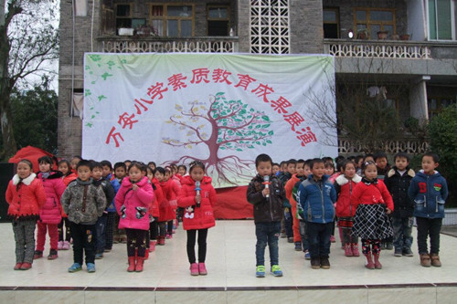 12月30日,万安小学素质教育成果展演活动在大操场隆重举行,全校师生、部分家长、街道居民1000余人观看展演。活动首先展示了少年宫各兴趣小组的书画、摄影、剪纸、编织、刺绣作品、球类运动、经典诵读现场,多角度全方位展示了我校学生的艺术才华。接着展示了700余人齐做广播体操、齐诵《弟子规》、和着音乐齐步跑操的大课间活动盛况。最后举行了"红色歌曲大家唱"歌咏比赛。展演节目丰富多彩:一幅幅精美的作品,一段段精彩的诵读,一篇篇优美的文章,一首首动听的歌曲……,充分展现了万安小学师生"崇雅尚学 身心万安"的精神风貌,博得了现场观众阵阵热烈的掌声。