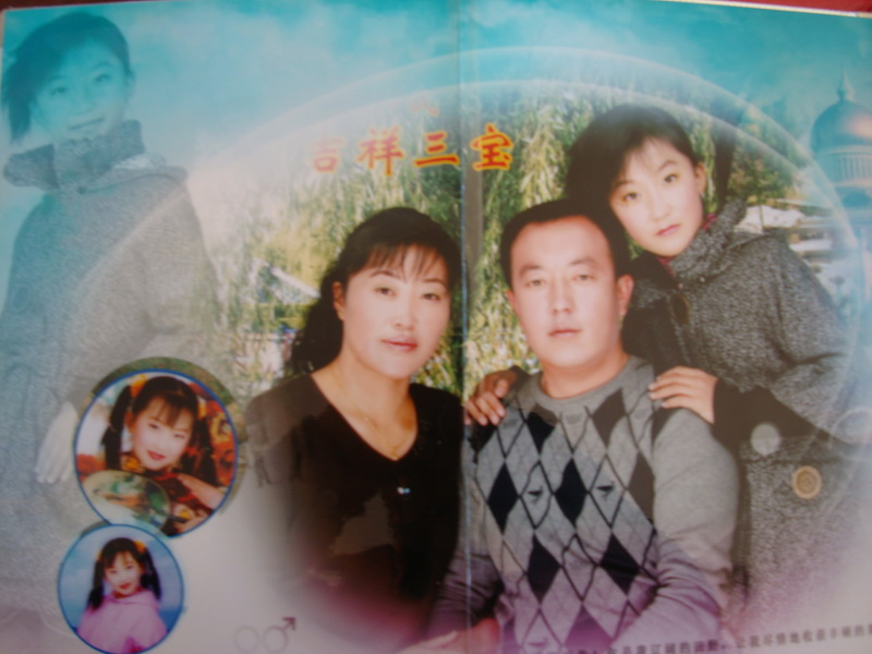 最后一页也是我最喜欢的,上面是我们全家福。爸爸在中间,是全家的顶梁柱;妈妈在右边依靠着爸爸,体现出了爸爸的靠山作用;我偎依在爸爸的背后,向前倾着身子,体现出了浓浓父女情。在"吉祥三宝"的衬托下更体现出了我们一家人的和睦。我爱爸爸妈妈,爸爸妈妈爱我。