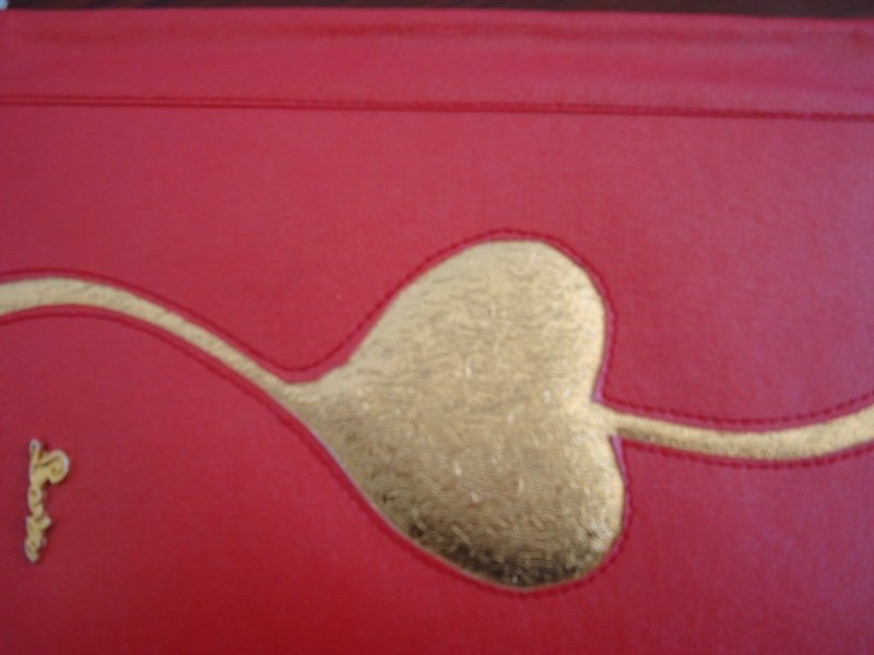 它身穿红衣服,红色皮子中间有一条金色的粗线,线中间有一颗金灿灿的心,在太阳的照射下发出夺目的光。影夹共有七页,其中有三页是我最喜爱的。