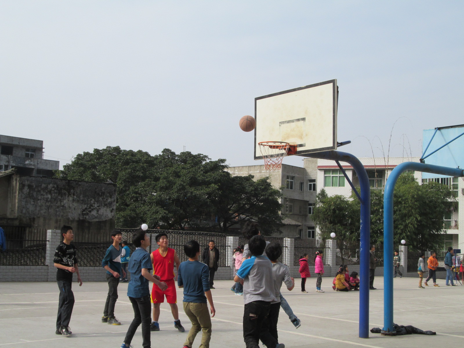 夏天是个热闹的季节。在校园的东面的操场,小朋友们在那里嬉戏着。山上的鸟儿仿佛也被他们银铃般的笑声吸引了。这时教学楼里传出了朗朗的读书声。哦!上课了。老师的粉笔在黑板上叽叽喳喳写个不停,同学们专心的看着,他们是多么热爱学习啊!我们来看看操场上的同学们,他们都欢呼着,看,我们班的运动健将还在欢乐的玩着篮球呢!那个球框仿佛在说:"一定能行的,来吧,相信自己!"好像是夏天热烈的气氛给了投球者的信心,一下子就投中了一颗球。这样好的气氛,伴着山上的美景,空中散发着这么美好的空气,你喜欢我的校园的夏天吗?