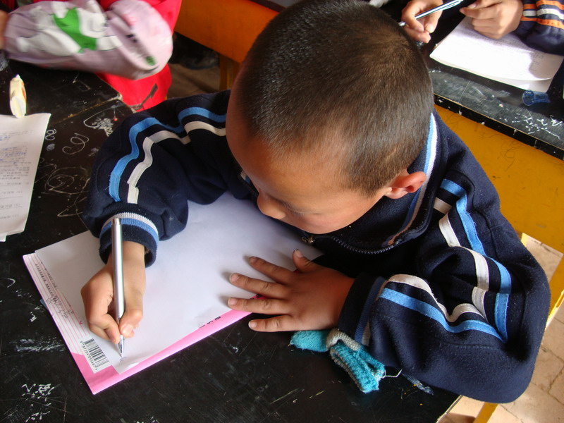 有一次,我正在屋里写作业,写累了就出去倒水喝。喝完水又回屋里写作业时,我突然发现放在桌子上的作业本不见了。我猜肯定是小表弟拿走了。我便大声喊他,可是不见他的踪影,到处找他也不见他人,真是急死我了。