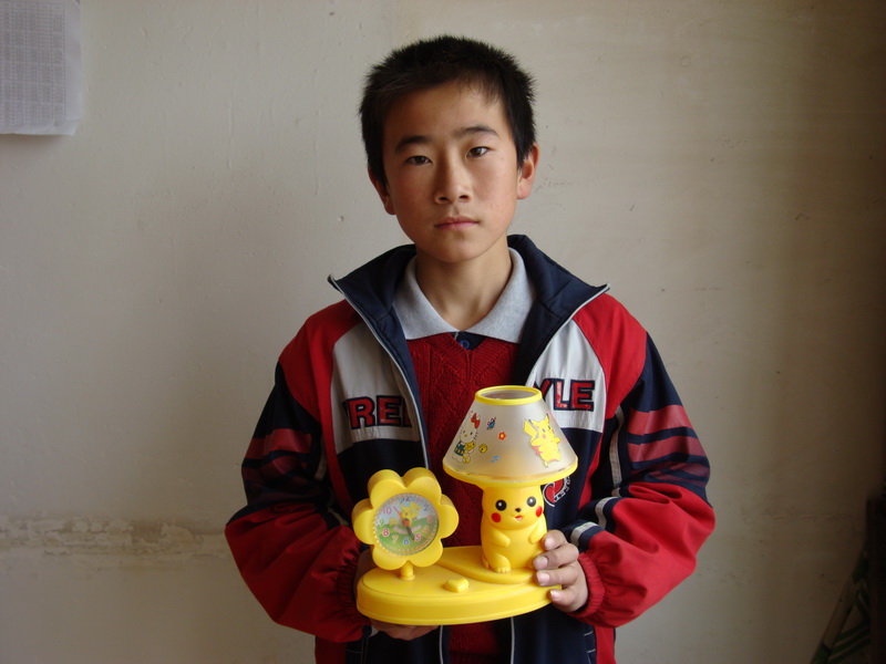 十月一日那天,我早早的就起床了,因为那天是我的生日,妈妈要送给我一件生日礼物。你看,它身穿一件黄大褂,左边是一个葵花形的钟表,右边是一只小动物,红红的脸蛋儿,笑咪咪的眼,头上还长着俩个犄角,盘腿而坐。