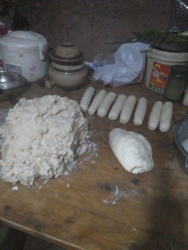 外爷把大米和黄豆洗净浸泡一天左右,在单独将米和水,黄豆和水用石磨磨成米浆和豆浆。