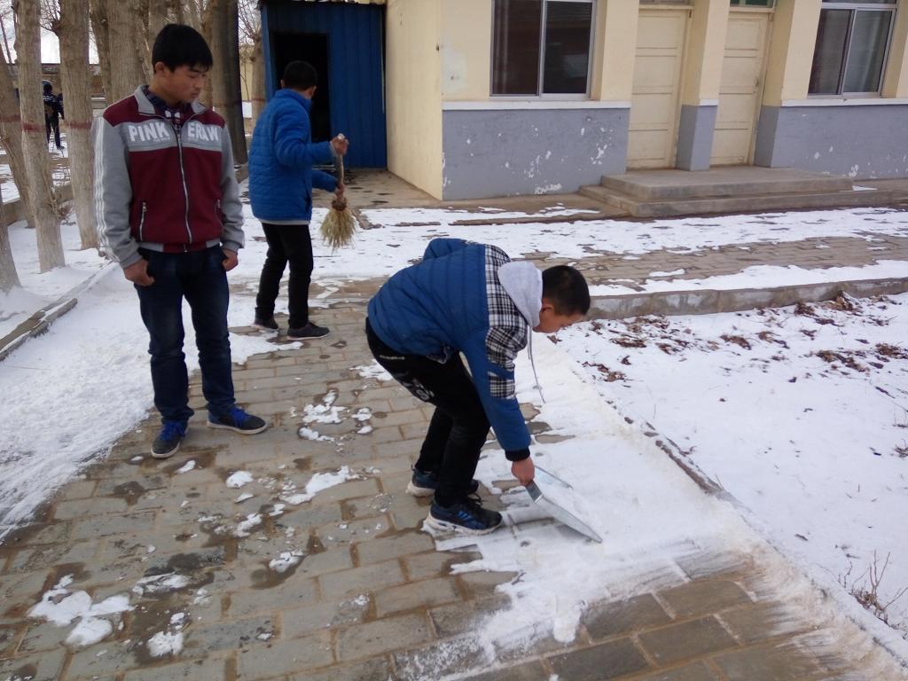雪花停止了舞蹈,但气温并没有升高。同学们开始扫雪了,由于好久没有见过雪花了,同学们都异常兴奋,一边扫雪,一边嬉戏,沉浸在春雪的欢乐之中。
