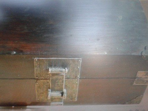 这只箱子是母亲的陪嫁嫁妆。在那个年代来说,有这样一只红漆大木箱,实属不易。可见外爷是费了好大的劲啊,才置办起算是满意的像样的嫁妆。不知箱子里面装的是什么体面的服装,我想肯定没有,听老人说有的没有什么可装,就装两块砖头,算是陪嫁品了。