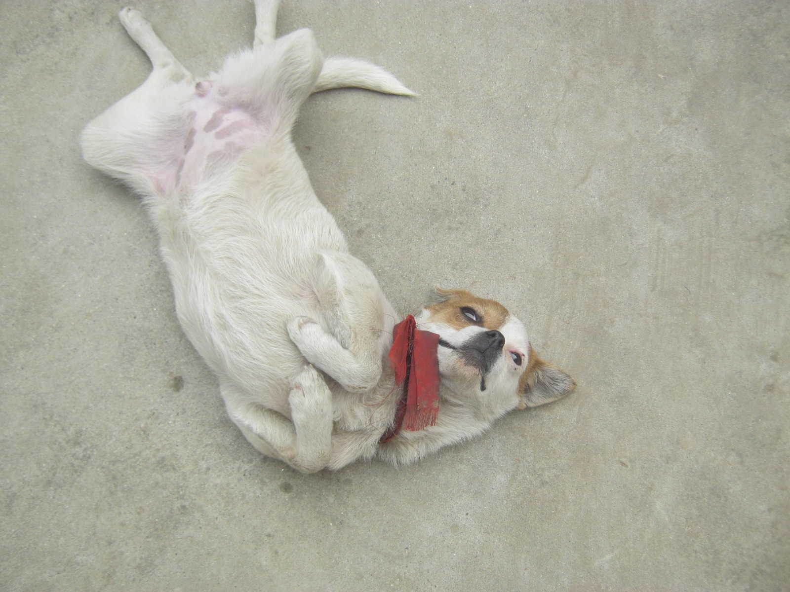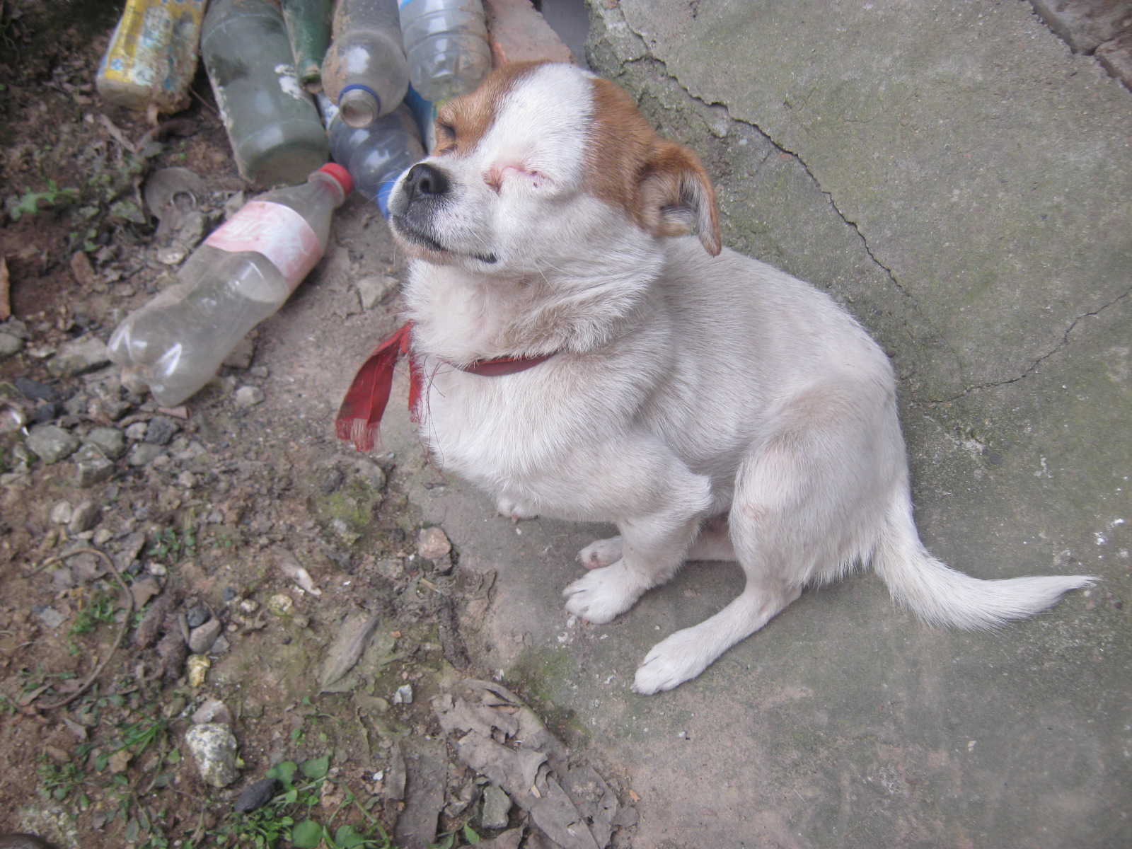 我家有一条小狗,他的右眼和右耳是棕色的,左耳也是棕色的,其它都雪白的软绵绵的,妈妈给他的脖子上系了一个红绳子,有时候它乖乖的跑到我面前讨吃的,有时候也被我逗得,和我一起玩,有时候伸伸懒腰,躺在地上玩耍,有时候在太阳下晒太阳,两只眼睛被阳光刺得快要眯成一条线了,看着这么一只可爱又好玩的小狗,是不是很想知道他的名字呀!它叫“小丑”,这是我妈给他起的,特别吧!
