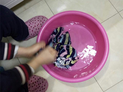 一个星期三下午,我放学回到家写完了作业,闲得没事时,我的视线看到那些衣服上。我想平时都是妈妈洗衣服,这次我也要试试看。于是我拿起半袖就洗了起来。我学着妈妈洗衣服的样子,先把水放进一个盆子里,再把盆子放在地上,然后把半袖泡在水里,我刚想把手放进水里,却被热热的水烫了,"太烫了!"我又在热水里加了凉水,这次好多了,妈妈的手每次都被水烫的红红的,一两天才好,真是辛苦啊!