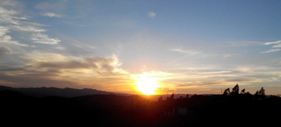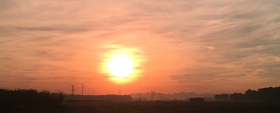 这时我又抬头遥望天空,夕阳不知何时坠到了山的那头。晚霞在夕阳的周围编织着橙色的彩绸,映着一层余晖,随风轻轻飘荡。云雾翻滚着,似乎是太阳的内心在挣扎,一边是归家的喜悦,一边是拂地的深情。然后轻轻的隐没在山的那一边,天空恢复了一片宁静。