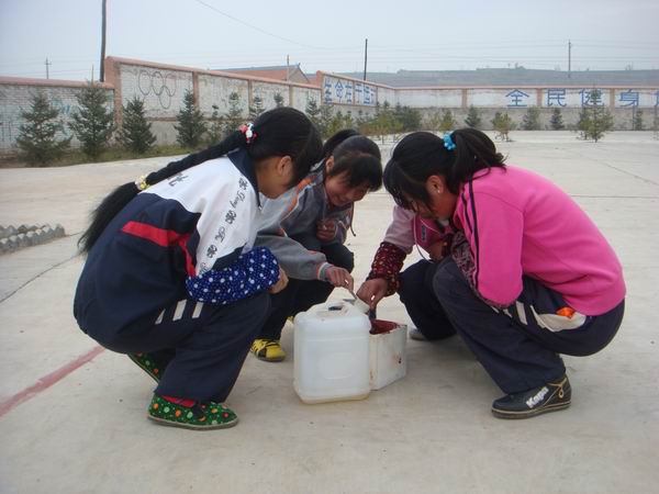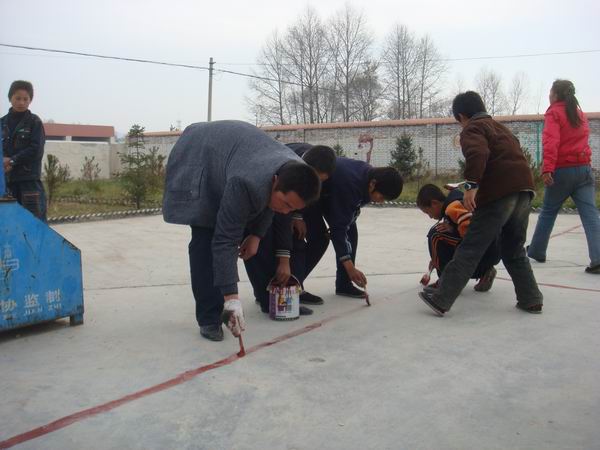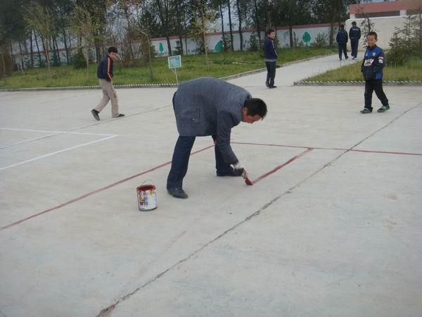 在我们一边劳动的时候,我们班的女生也在一边给我们帮忙,她们把我们画线的油漆调的很自然,这样大大的有助于我们完成任务。