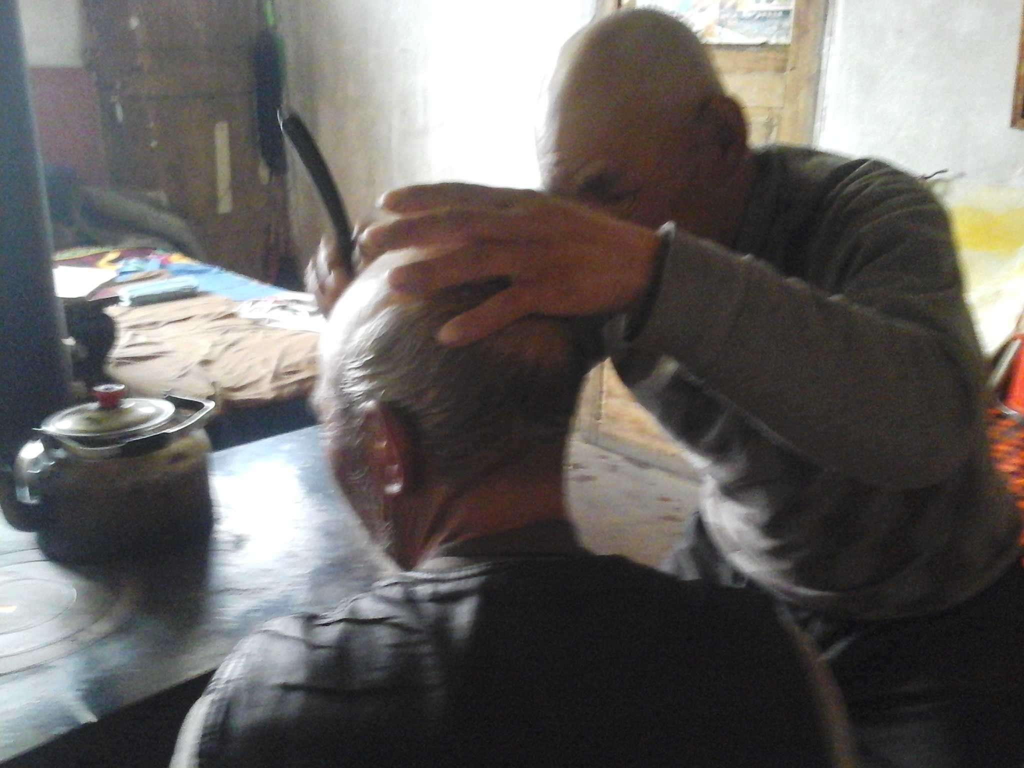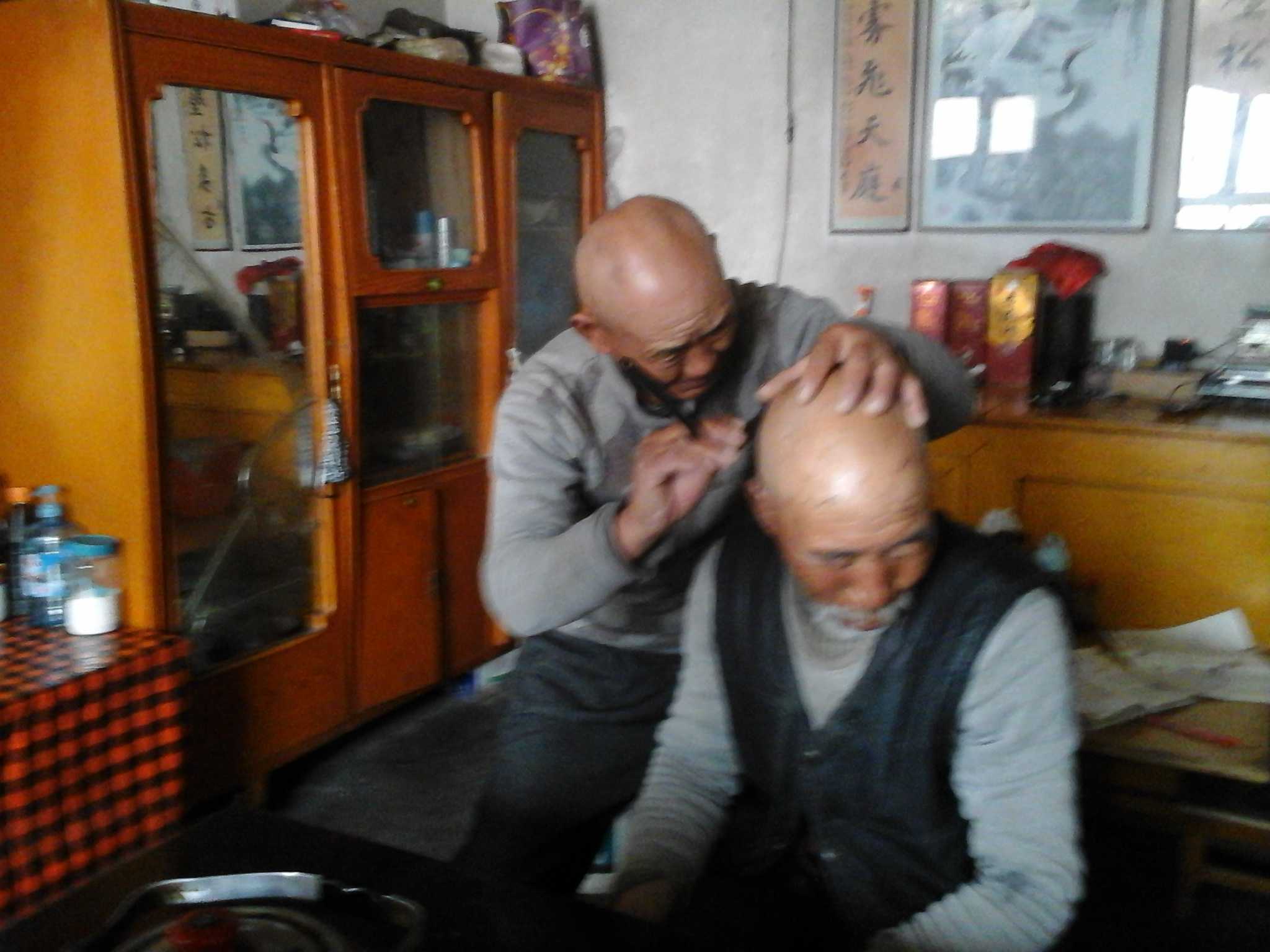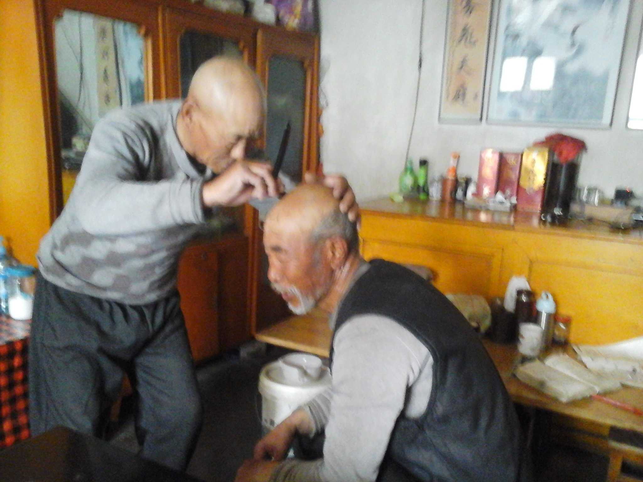 接下来,就是那位爷爷给我爷爷剃,和我爷爷相比,那位爷爷要娴熟得多,剃的也比较好一点。