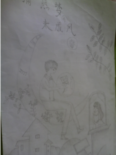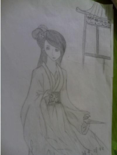 每逢遇到不开心的事总喜欢宣泄在纸上,一有空便做在桌前醉心于我的创作,画起画来就什么都忘了。有时候我又是一个性格有点外向冒冒失失的孩子,每次做卷子或是写作业的时候总是急急躁躁的,从不认真检查,为此还闹过不少笑话。可是一画起画来想有了定海神针一般,一坐便是两三个小时,越画越入迷。就这样,画画慢慢的陶冶了我的心性,让我不再像以前一样冒冒失失的,我喜欢画人,画月影疏弥下巧笑倩兮女子的一颦一笑,眉目传情,宛若初开的净莲。