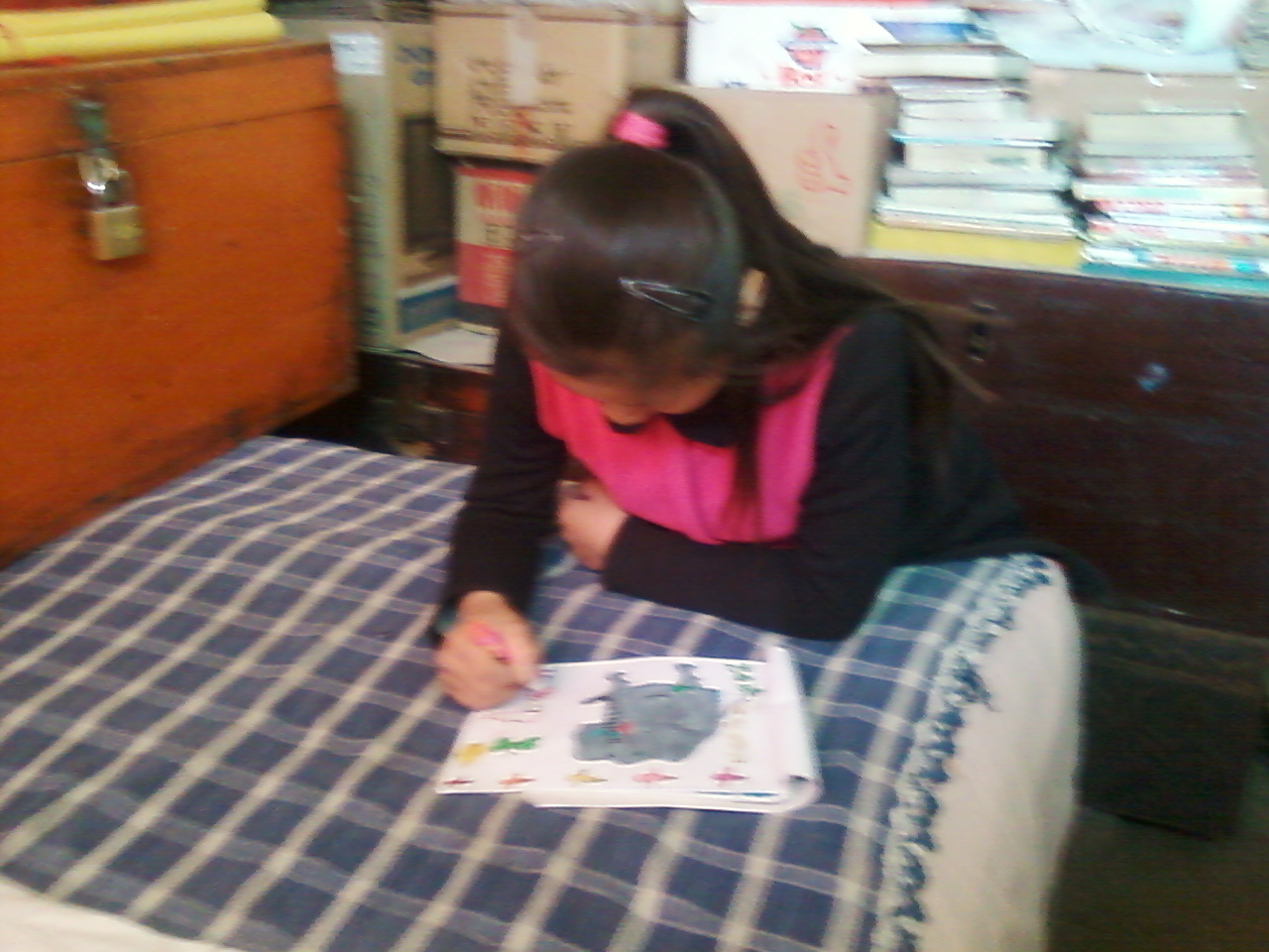 那是在一个放寒假的时候,有一天,我和她在院子里玩耍,玩了一会儿我们不想玩了,我和她又到屋子里去了,我对她说:"李雅琴,时间过得真快,寒假已经过一半了,我们先写一会儿作业吧!不然我奶来会批评我的"。她看我的作业还有很多,于是她说:"柳凤棠,你还有什么作业没做出来,我帮你做吧,不要是老师检查的作业就行"。她就帮我画了一幅画,她画的是一个帅气的小男孩,她既画的逼真,她把颜色也涂的很鲜艳。