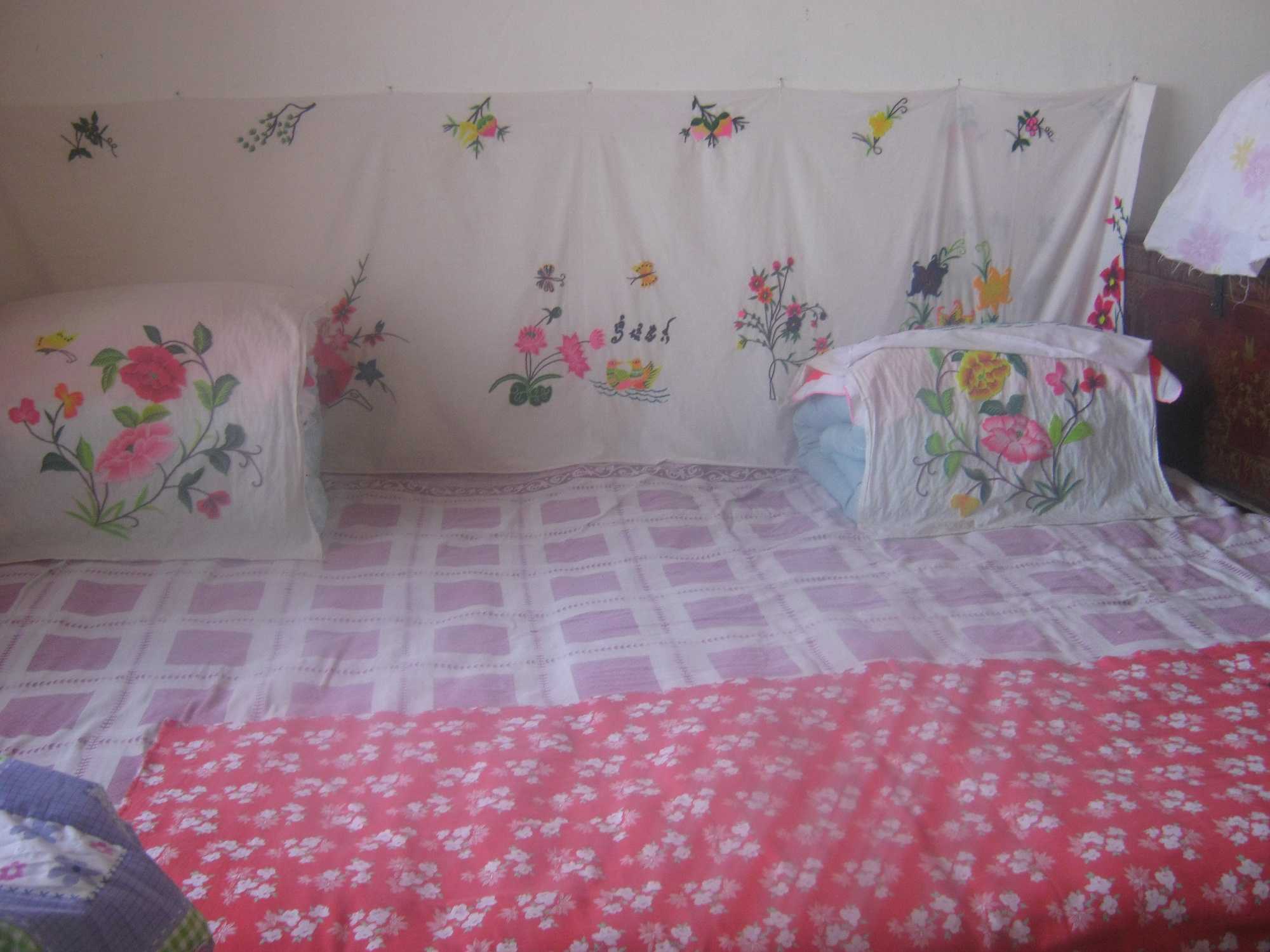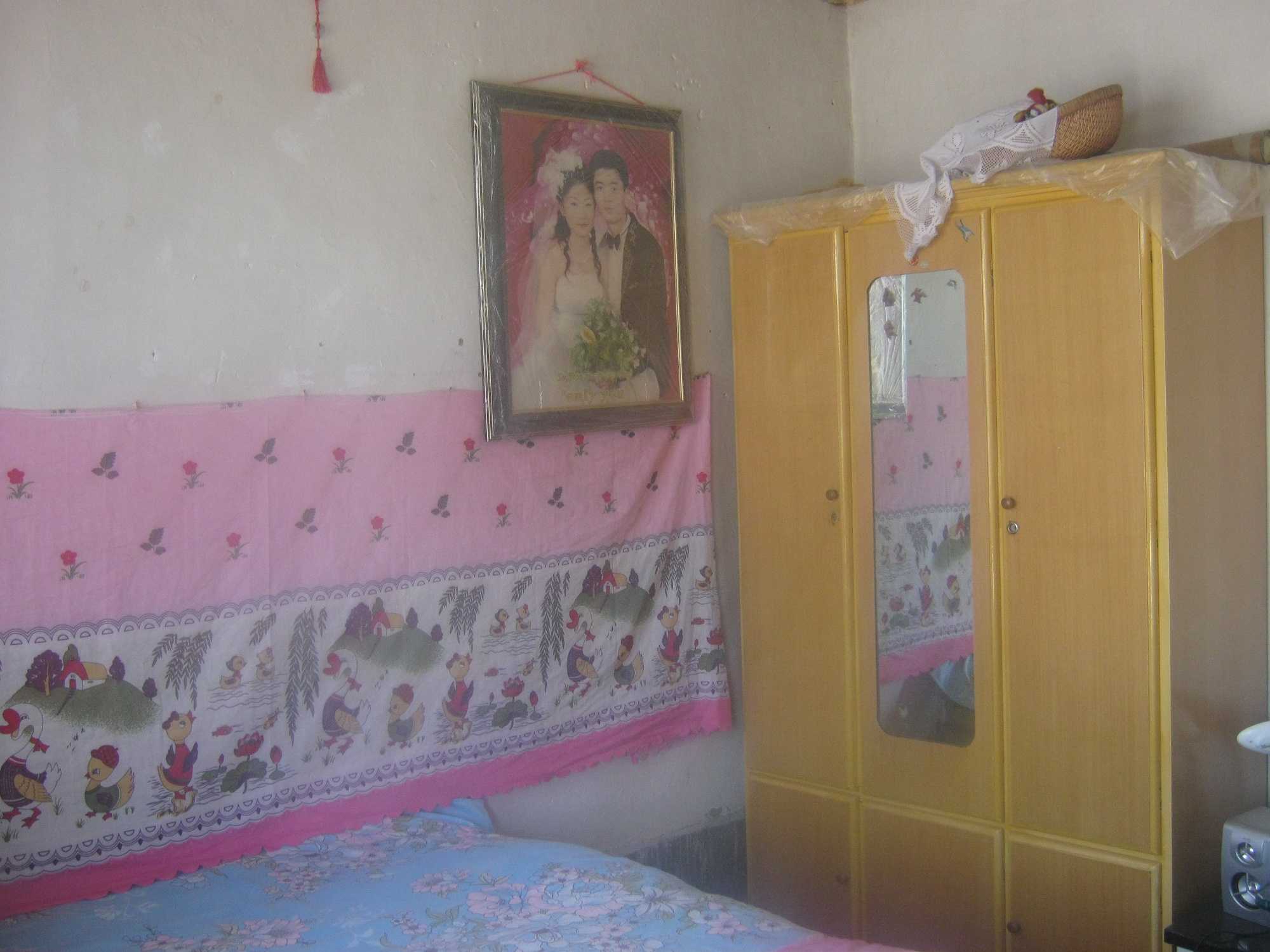 爸爸和妈妈的卧室在奶奶和我卧室的旁边的房子里,比起奶奶和我的卧室,爸爸妈妈的卧室就是一个小房子,当我们第一步迈进去就是一个音响和一个大衣柜,爸爸妈妈的卧室窗户上时常贴有窗花,有猴子,有花草的,还有"福"字的,很漂亮的。在大房子的东面也有一间房子,东房里面很少有人睡,除非就是过年。进去也有一个大炕,上面可以睡五六个人呢,也有两个大衣柜,里面装了大大小小乱七八糟的东西。