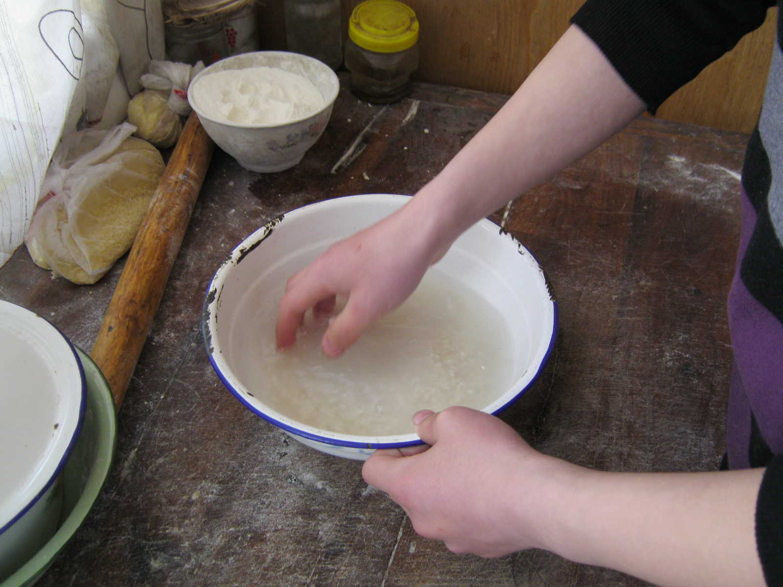接下来的工作就是处理鸡蛋了。按照吃饭人定量,每人一个鸡蛋的量,把鸡蛋磕到碗里,加一点盐,用筷子使劲搅打,把蛋液混合均匀。
