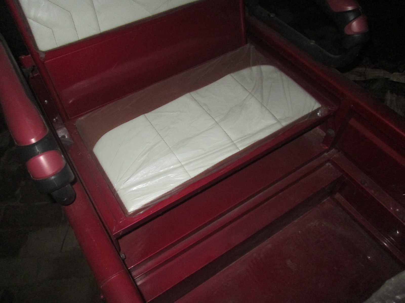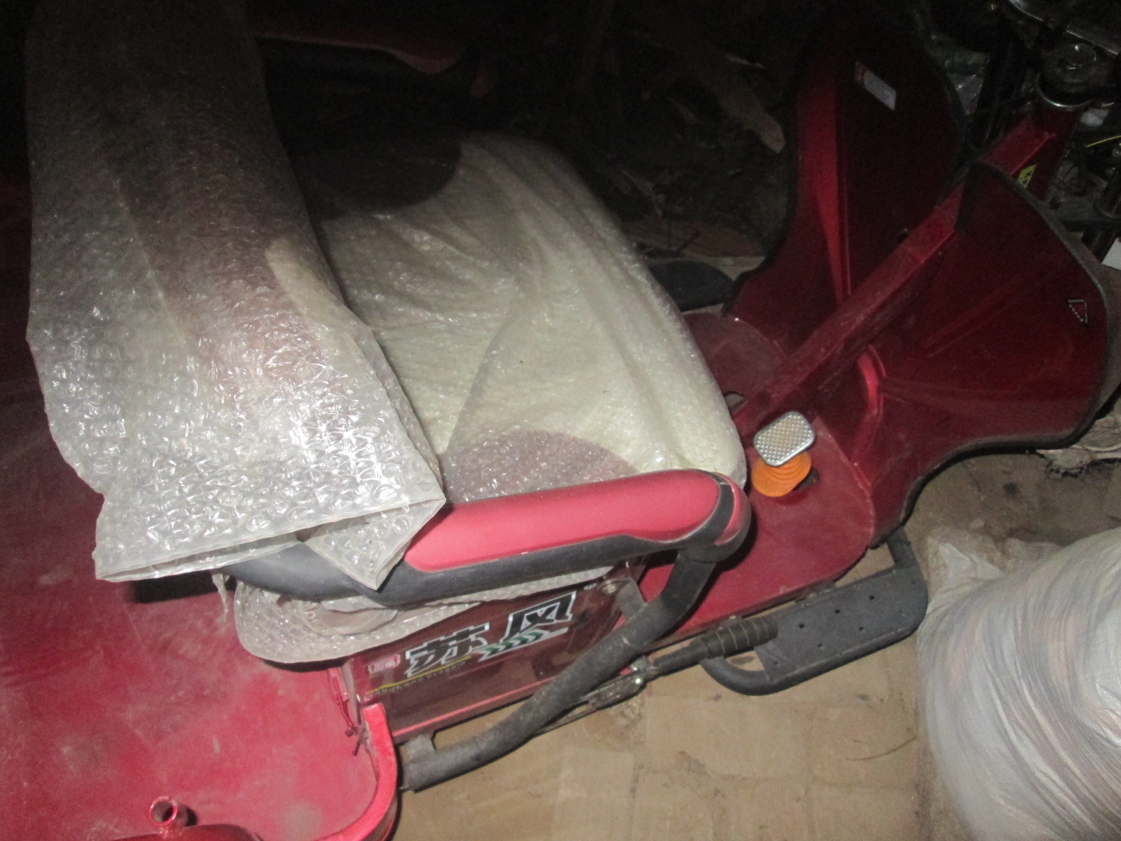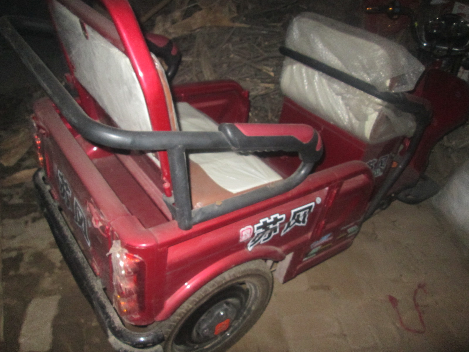这辆车呈红色,前面是驾驶室,手把和一般三轮车的手把一样。上面的按钮都有文字标注,非常方便爷爷的出行。