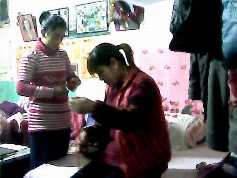 先是我绷,妈妈绕。我像犯人似的,两只手被手铐铐着,双手平行分开,套住那堆毛线。妈妈从毛线堆里找到一个头,缠在左手食指上,缠了一个小团后,再抽出食指,用五个指头捏住,接着顺着抽出来的那根线,在小团毛线上一圈圈增加。有时,我绷得太紧,妈妈就一边绕,一边拉拉拽拽,动作熟练的很,从不打结,真让我佩服。