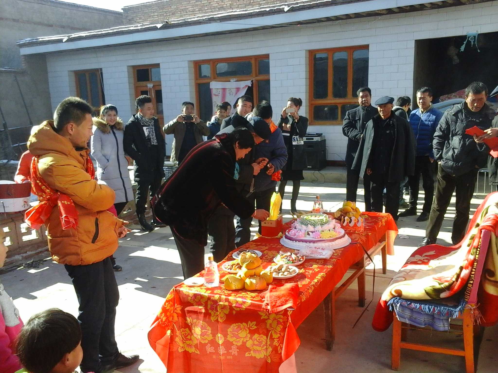 接下来就是仪式了。首先,由寿星的儿子和儿媳给寿星拜寿,然后是孙子和孙女给寿星拜寿。拜过寿后,爷爷会给孙子孙女发红包,虽然钱不多,但是也装进了爷爷的心意。最后叔叔婶婶们表演他们的节目,有嘹亮的歌曲,有优美的舞蹈。